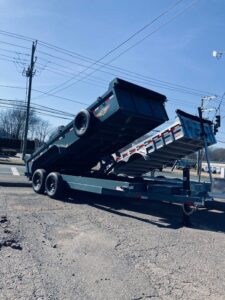 7×16 Dump Trailer with spare tire,ramps,& tarp. Power up and down with hydraulic tongue jack.14,000 GVW. Color Gray.$13,895.00