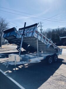 7 x 14 all aluminum dump trailer, three stage single piston, aluminum wheels. 12,000 lbs.GVW, lifetime structural warranty. $17,195.00